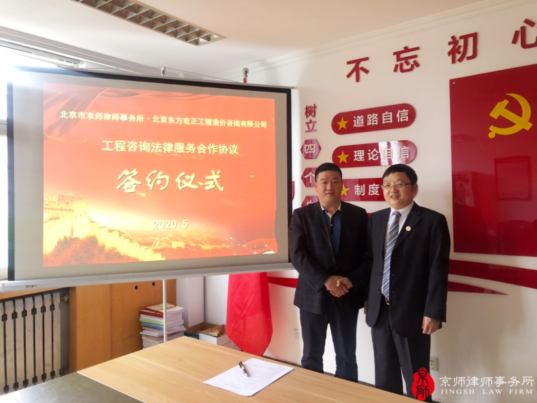 2020年5月11日,北京东方宏正工程造价咨询有限公司与京师律师事务所签订工程咨询法律服务合作协议,双方在施工总承包、工程总承包、PPP、BOT等各类建设项目的招标代理、造价咨询、全过程项目管理等咨询服务领域达成全面合作。